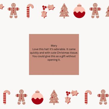 Love this hat! It’s adorable. It came quickly and with cute Christmas tissue. You could give this as a gift without opening it.